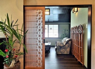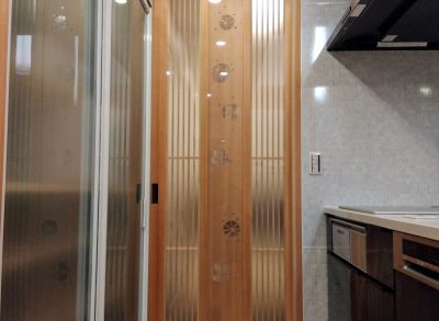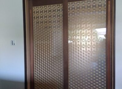 リフォーム建具の依頼 施主様 弊社ショールームお越しになりご要望をお聞きして弊社ショールームにてプレゼンさせていただきました。 【施主の夢を形に】弊社の根本理念ですDKと応接間境です。 2枚引き込みにになっています。 designは伝統組子(角麻...