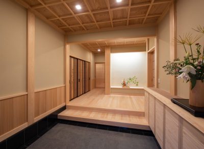 高級和風住宅に納品 浜松市玄関ホール (檜の香りが漂う憂いの空間) 静寂な格式を演出 信義・礼節を感じさせてくれます。 伝統和風建築の真骨頂 大切にしたいものです。 (高級和風料亭・店舗入口 店舗建...