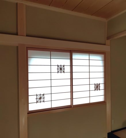吉野杉白木造り・組子角麻の葉 帯 襖紙(高級和紙・紬セレクト)